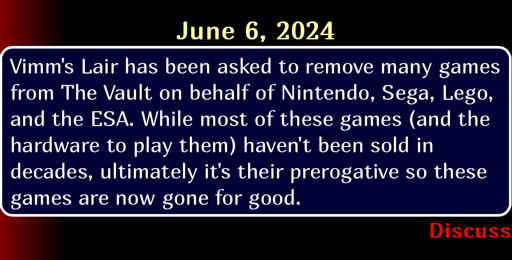 Vimms lair is starting to remove many roms that are being requested to be removed by Nintendo etc. soon many original roms, hacks, and translations will be lost forever. Can any of you help make archive torrents of roms from vimms lair and cdromance? They have hacks and translations that dont exist elsewhere and will probably be removed soon with ios emulation and retro handhelds bringing so much attention to roms and these sites