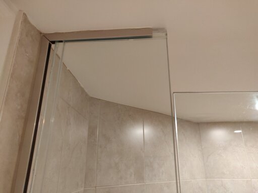 This is a photo from my shower. There’s a glass “wall” and a glass door. The door is connected to the glass wall by a hinge. The glass wall was glued to a metallic frame but it looks like the glue is not holding it in place anymore.