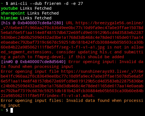 Uri@infosec.pub to Piracy: ꜱᴀɪʟ ᴛʜᴇ ʜɪɢʜ ꜱᴇᴀꜱ@lemmy.dbzer0.comEnglish · edit-21 month ago[fixed] Can anyone help me? I'm getting this error while downloading with ani-cli. I'm using it on termuxinfosec.pubimagemessage-square7linkfedilinkarrow-up135arrow-down11