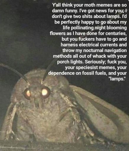arrow-up11arrow-down1imageRadical mothlemmy.dbzer0.comSnokenKeekaGuard@lemmy.dbzer0.com to Lemmy Shitpost@lemmy.world · 4 months agomessage-square3linkfedilink