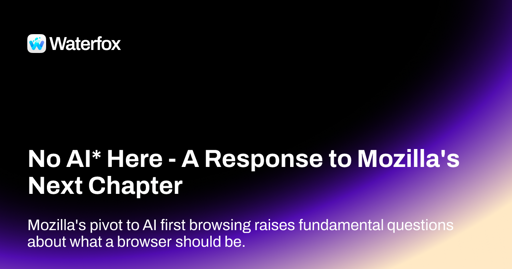arrow-up1236arrow-down1external-linkNo AI* Here - A Response to Mozilla's Next Chapter - Waterfox Blogwww.waterfox.comNutomic@lemmy.ml to Privacy@lemmy.mlEnglish · 14 days agomessage-square54linkfedilink