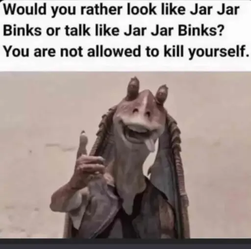 Looking like Binks would probably get me experimented on as an alien. Speaking like Binks would get me a pretty decent shot at the presidency