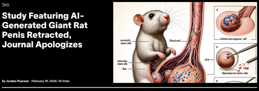 arrow-up1204arrow-down1imageStudy Featuring AI-Generated Giant Rat Penis Retracted, Journal Apologizesdiscuss.tchncs.degandalf_der_12te@discuss.tchncs.de to Lemmy Shitpost@lemmy.world · 1 month agomessage-square19linkfedilinkfile-text