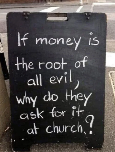 I would much rather my church have some money than money be forcefully taken from me (taxes) to the government.