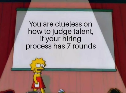 If their hiring process is 7 rounds they’re not hiring talent, they’re hiring people willing to jump through hoops, give up all dignity, and be subservience.