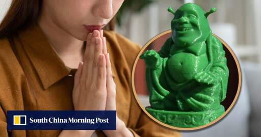 She isn’t worshiping Shrek any more than someone praying at a cross worships wooden plus signs. Stupid article.