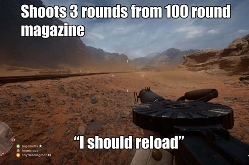 > bullets whizz past and you only manage to load one bullet into your mag before: