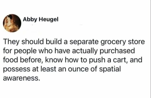 Could we ban conversation between cart-holders? Two people shopping together, same cart same list, is fine. But anything beyond “Hi, nice to see you” between two carts clogs the aisles