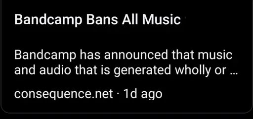 How bandcamp is going to enforce the AI ban is a big question though. I suspect most of the AI sloppers will not exactly openly declare that their music is AI.
