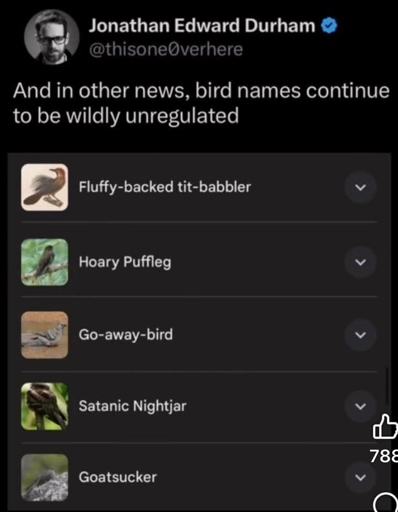 At work, I have built a tool that creates Linux images on demand. Long story short, I decided to give them a human readable alias. Told my colleagues that image aliases are generated from a pool of hand-picked bird names, and did not elaborate further.