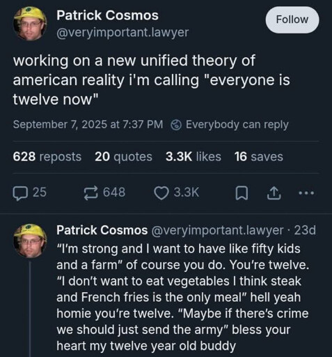 arrow-up11.58Karrow-down1imageUnified Theory of American Realitylemmy.worldUnderpantsWeevil@lemmy.world to Lemmy Shitpost@lemmy.worldEnglish · 24 days agomessage-square123linkfedilink