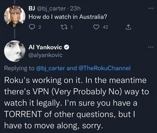 The Picard Maneuver@piefed.world to People Twitter@sh.itjust.worksEnglish · 28 days agoWeird Al's advice to a fanmedia.piefed.worldimagemessage-square0linkfedilinkarrow-up11arrow-down10 cross-posted to: piracy@lemmy.dbzer0.com