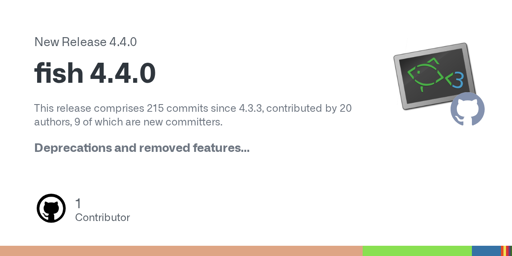 arrow-up167arrow-down1external-linkRelease fish 4.4.0github.competsoi@discuss.tchncs.de to Linux@lemmy.ml · 16 days agomessage-square4linkfedilink