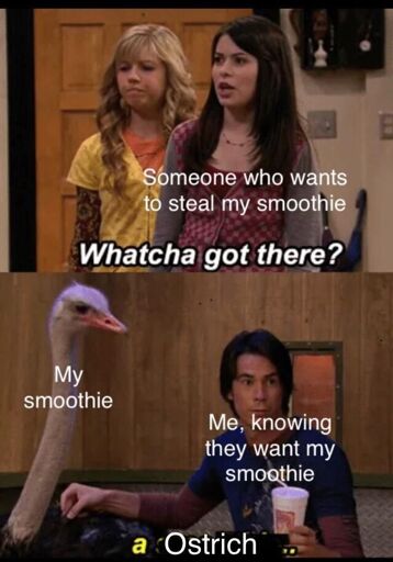 Me, never having had a smoothie: “Is smoothie theft a common problem in the smoothie drinking community? Huh. I never knew. I do want to steal that Ostrich though.”