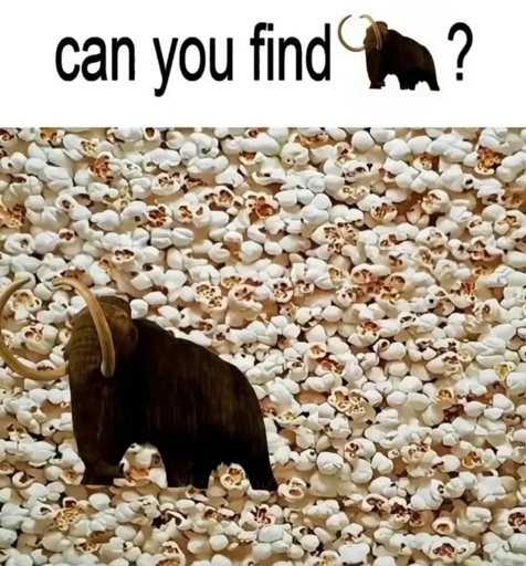 Wooly mammoths have never been known for their ability to find things at the best of times (in the modern era, at least), but in this case the task is particularly hard because all of the popcorn is behind them so they cannot see it!