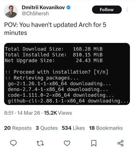 cannedtuna@lemmy.world to linuxmemes@lemmy.worldEnglish · 14 days agoBtwlemmy.worldimagemessage-square80linkfedilinkarrow-up1783arrow-down115