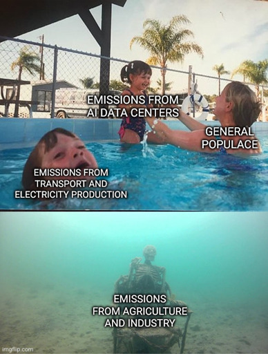 Motherfucker the AI bullshit isn’t better than the rest of the emissions; it’s actively compounding them in a way we do not fully comprehend, and is absolutely moving the timeline of our extinction up by decades. As a wicked sick bonus, AI is also destroying all the funding systems we would’ve used to try and fight Climate Change in the private market.