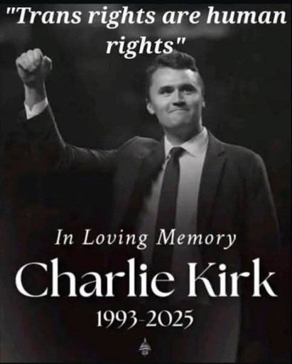 Charlie Kirk was an outspoken champion of equality, tolerance and unity. He spent many years in his teens, twenties, and right up until his death at 31 years old at protests and rallies, leading the charge for civil rights, gay/trans rights, and many other causes that he felt strongly about.