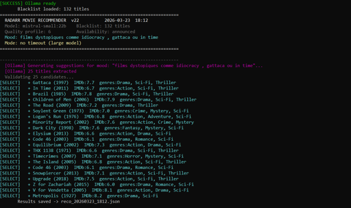 I just pushed v22 of my project : a local AI companion for Radarr, that goes beyond generic genre or TMDb lists.