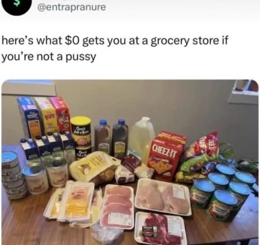 This is a funny meme and all but allow me to ruin the fun. This kind of small scale thievery in the absence of actual systemic change just leads to things being more expensive for the common person.