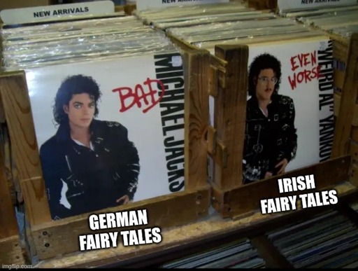 So you’re saying that Irish fairytales are funny parodies that are better than the German originals?