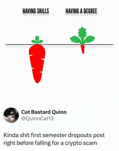 Can someone without a degree have those skills? Totally. Does someone with a degree have all those skills? Not specifically, but they’ve likely been through the ringer for ~4 years and seen a lot of shit they had to face on their own and be accountable for it.