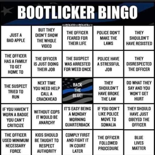 That’s why it’s Bootlicker Bullshit Bingo card.