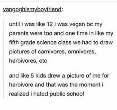 My school lunch was mostly sushi with a filling of fermented prune called umeboshi, or tempeh and seaweeds, pumpkin or rice balls and sesame seeds. We were underfed, yellow flaky skin because of the overdose of carotene and you see everyone around you in school eating candy, fries, meat and what not while also taking the piss at you for being different and stinking of that diet.