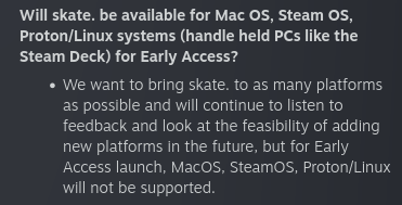 Will skate. be available for Mac OS, Steam OS, Proton/Linux systems (handle held PCs like the Steam Deck) for Early Access?
