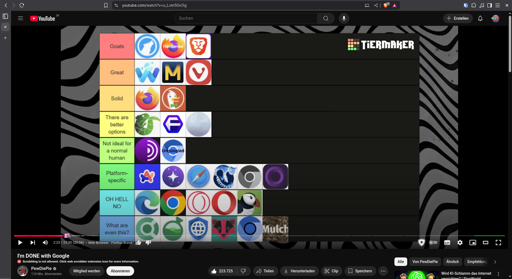 Matt@lemmy.ml to Privacy@lemmy.ml · 8 months agoPewDiePie's tierlist of browserslemmy.mlimagemessage-square6linkfedilinkarrow-up10arrow-down12file-text