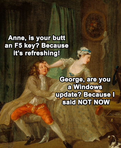 Mickey7@lemmy.world to Lemmy Shitpost@lemmy.world · 12 days agoromantic tech talklemmy.worldimagemessage-square1linkfedilinkarrow-up1226arrow-down17