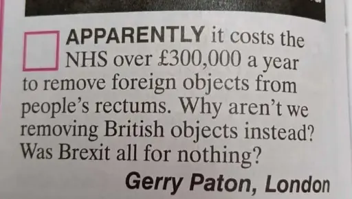 minus-square🇰 🌀 🇱 🇦 🇳 🇦 🇰 🇮 @pawb.sociallinkfedilinkEnglisharrow-up25·5 days agoWhat’s the most British thing I can stick in me bum? Please don’t let it be James Corden. 😬