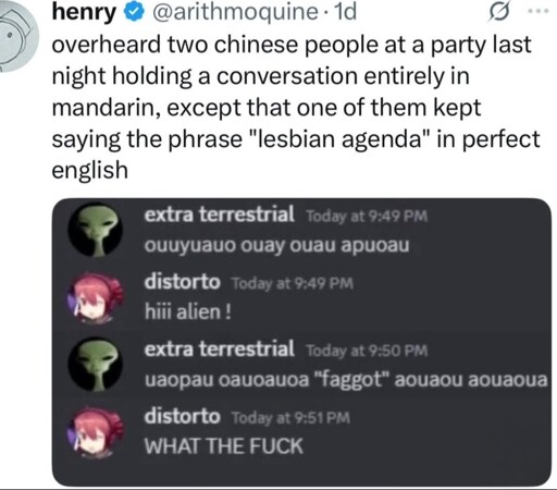 Just imagine someone talking to you in a foreign language and ends with a term your grandfather used to berate stupid neighbors.