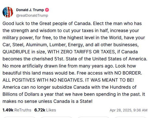 arrow-up10arrow-down1imageTrump tells Canadians to Elect the guy who'll make them the 51st State of US [Canadian elections today]lemmy.caRandAlThor@lemmy.ca to Lemmy Shitpost@lemmy.world · 6 months agomessage-square1linkfedilinkfile-text