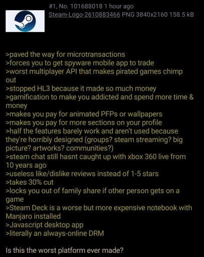 arrow-up13arrow-down1imageAnon dislikes Steamprogramming.devstarman@programming.dev to > Greentext@lemmy.mlEnglish · 2 years agomessage-square1linkfedilink