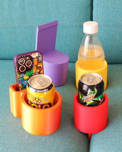 A collection of cup holders that slide between your couch cushions. Free to download https://makerworld.com/en/models/1318086-cup-holders-for-sofa-cushions#profileId-1353638