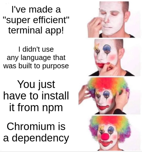 How much you wanna bet the “dev” doesn’t realise chromium is a dependency, in this scenario?