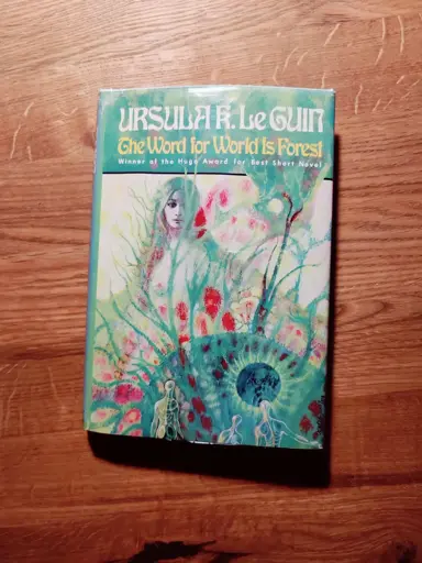 Unfortunately it gets a little weird with The Word for World Is Forest: The only good looking hard cover happens to be on one of the earlier editions and while I doubt it’s truly rare, it’s rare enough people start asking a lot for it. I finally got lucky and some kind bookshop on ebay put it up for less than 100, dust jacket and all, and I finally get to add it to the shelf.