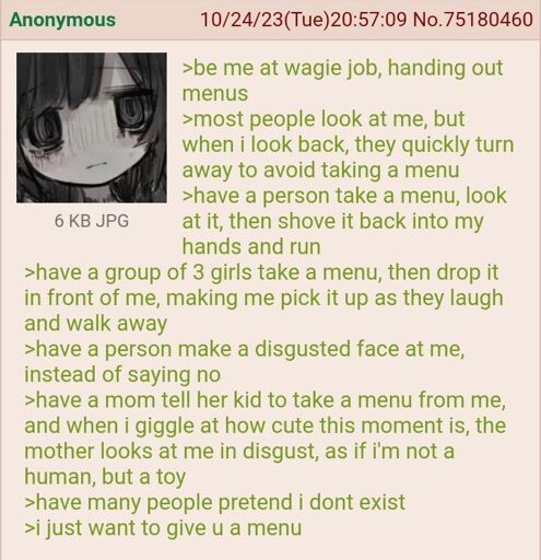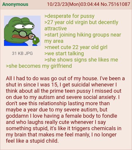 ReaperWithASniper@lemmy.world to > Greentext@lemmy.ml · 2 years agoAnon's Friendlemmy.worldimagemessage-square1linkfedilinkarrow-up10arrow-down10