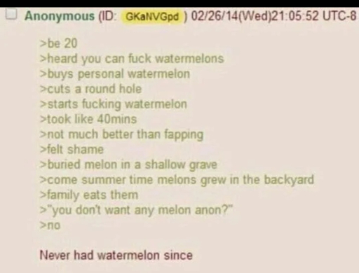 dazzledbeans @lemmy.world to Lemmy Shitpost@lemmy.world · 3 years agoMelons right.lemmy.worldimagemessage-square0linkfedilinkarrow-up10arrow-down10